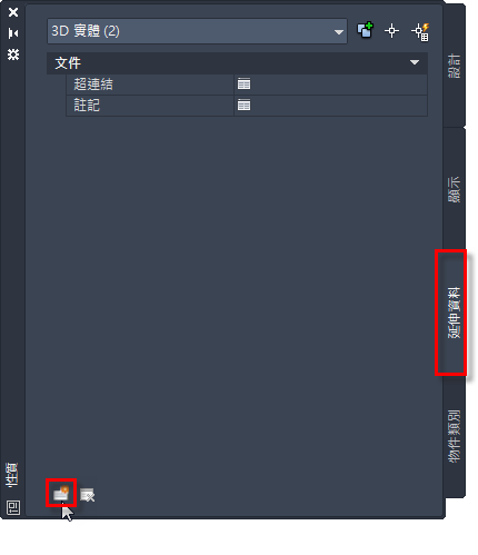 按一下「性質」選項板中「延伸資料」頁籤上的「加入性質集」