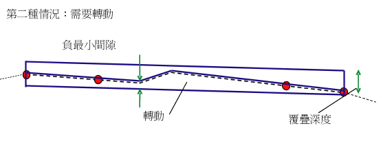 介於連續取樣線之間和左偏移與右偏移之間的面積是用於磨光面積的計算。如果偏移之間的寬度差小於公差值,則該面積不會包括在報告中。