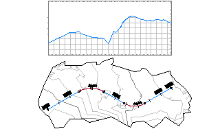建立縱斷面視圖可以查看與水平定線關聯的一個或多個縱斷面。以地形的縱斷面視圖做為參考,可以建立設計地形 (例如道路) 的配置縱斷面。在縱斷面視圖上,您還可以對位於同一區域中的其他水平定線的縱斷面進行疊合。
