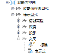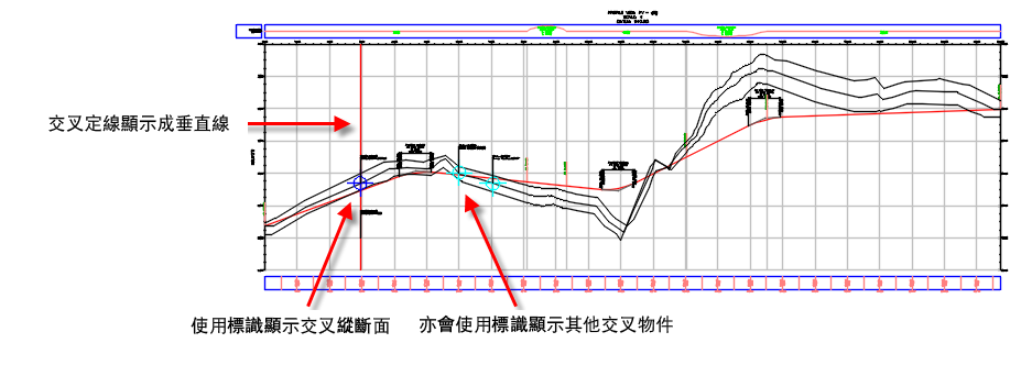 交叉物件會使用縱斷面視圖交叉標示型式。