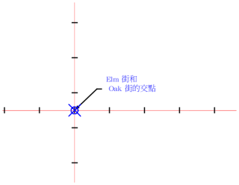 例如,可以建立具有兩個參考文字元件的註記標示,每個元件參考一個定線名稱。然後,可以在兩條定線的交點處插入該標示,並選取交會定線做為物件資料。