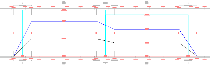在重疊已解決後,共用的樁號值可以使用表格編輯器或掣點在鐵路超高視圖中操控。