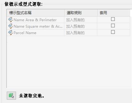 若要將特定標示型式名稱的所有標示加入至表格中,請選取標示型式名稱旁邊的「套用」勾選方塊。使用此方法時,所有標示均被切換為標籤模式,並不建立子模式。