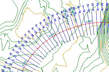 取樣線用作線性平面物件,可表示切斷一組指定地形的橫斷面時採用的方向。