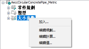 在您編輯零件表並將新零件族群加入至您的零件表之前,此新零件族群在建立或編輯管網時不可用。
