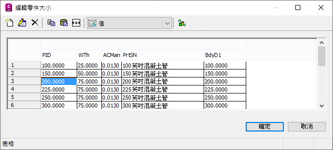 如果零件族群中沒有所需的大小,您可以使用「零件建置器」功能修改零件族群大小。