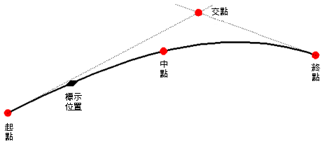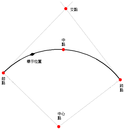 使用曲線標示錨定可以將標示貼附至弧的中心點。