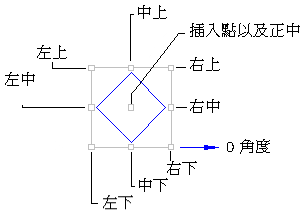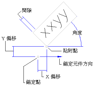 下圖所示為這兩個點如何共同定位標示元件 (圖解中被旋轉的文字):
