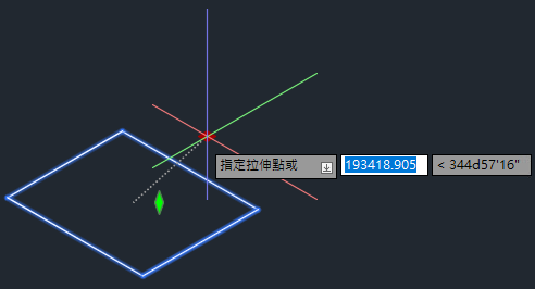 綠色菱形掣點可調整地下儲存物件的高程或垂直偏移。此掣點的移動會鎖住於 Z 軸。