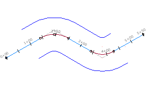 您可以將偏移縱斷面疊合至既有縱斷面視圖。若要取得更多資訊,請參閱〈「建立偏移縱斷面」頁籤 (「建立偏移定線」對話方塊)〉。