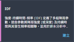 - 按一下「建立 IDF」,將 IDF 降雨資料集加入至降雨清單。