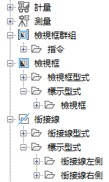 下圖展示了「設定」樹狀目錄中的檢視框和銜接線集合: