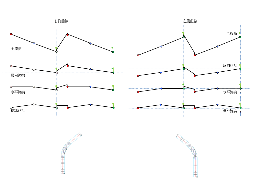 下圖描述分割的拱形道路的「右側」旋轉方式。