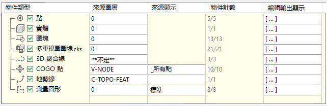 所選類型的物件若落在「投影規則」中指定的區域內,則會投影這些物件。 且如果它們符合在「來源圖層」和「來源顯示」欄中指定的篩選準則。