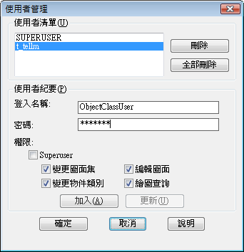 如果您無法以 SuperUser 身份登入,則可以具有建立物件類別之權限的新使用者身份登入。