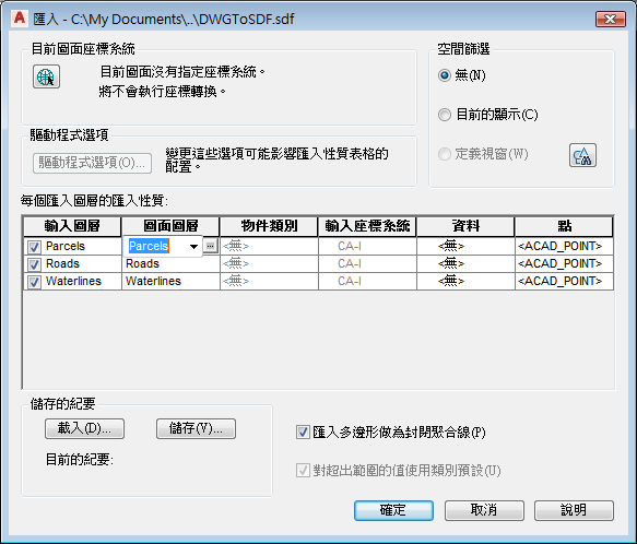圖面樣板已定義原始圖面圖層。由於這些圖層是您正匯入之圖徵類別的來源,因此要使它們適當對映。