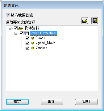 當您選取「Street_Centerlines」時,會自動選取「Street_Centerlines」下的所有內容。