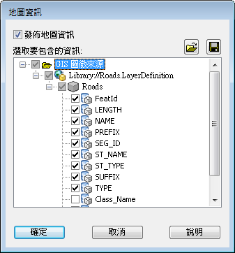 - 在「地圖資訊」對話方塊中,選取「發佈地圖資訊」。