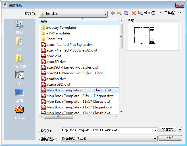 AutoCAD Map 3D 工具集會自動變更為「Template」資料夾。