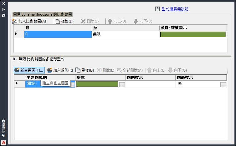 一個主題圖是一種顯示型式。您可以依圖層指定空間圖徵的型式。