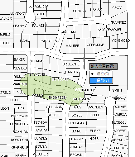 在提示中按一下「選取」。按一下環域以選取其做為位置條件。
