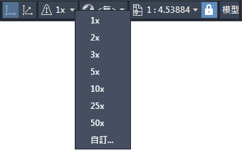 - 在地圖下方的狀態列中,按一下「垂直誇大率」旁邊的向下箭頭。