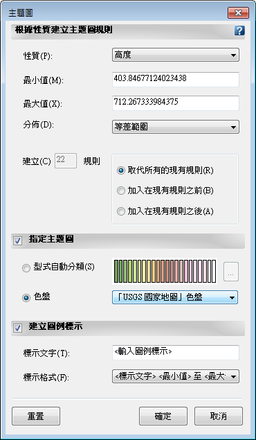 - 選取「高程」做為標示的文字內容。
