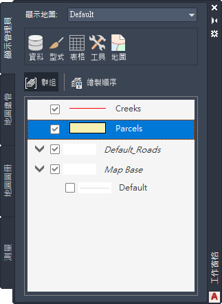 AnnotationTutorial.dwg 中的宗地圖層是一個空間圖徵類別。實際資料儲存在一個名為 Parcels.sdf 的 SDF 檔案中。地圖連接至此檔案,並在地圖中顯示宗地的幾何圖形和資料。您可以隨意設定宗地型式。型式設定不會影響資料倉庫本身。型式設定與用於連接至資料倉庫的資訊一起儲存在地圖中。