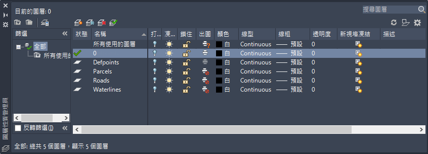 DWGMap.dwg 圖面具有多個圖面圖層。