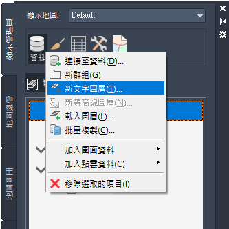 您可以使用與建立圖面圖層非常相似的方法,在「顯示管理員」中建立文字圖層。