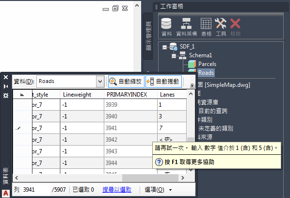 您已連接到之前建立的 SDF 檔案並新增性質到此檔案的資料架構中。您已在「資料表」中輸入了新性質的值。