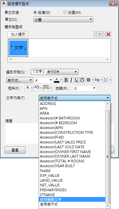 您可以使用表示式來確定標示的文字。