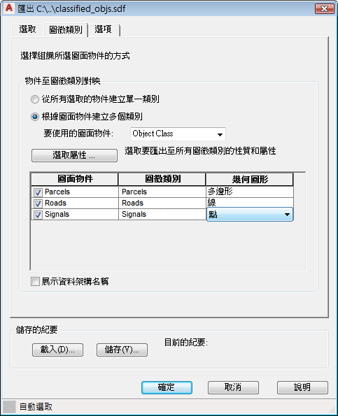 使用物件類別匯出至 Autodesk SDF 檔案的步驟