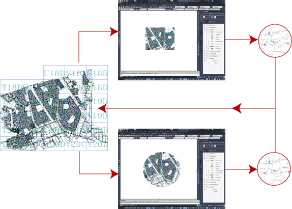 多個使用者可以編輯圖面物件,然後將其存回已貼附的圖面。