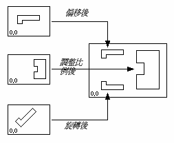 指定物件從來源圖面引入至目前圖面後的偏移。