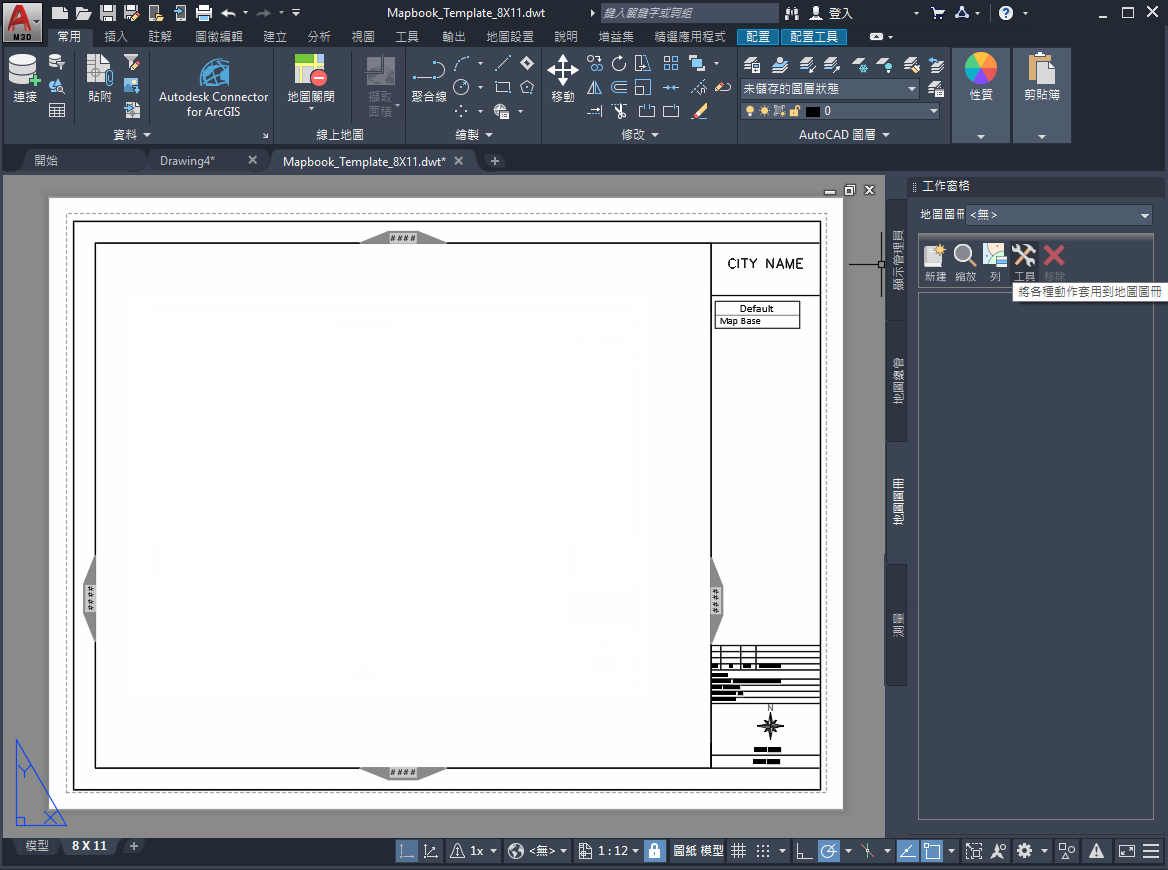 定義地圖圖冊樣板並儲存地圖後,即可將地圖圖冊發佈至繪圖機或發佈成 DWF 檔。
