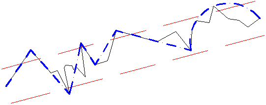 細黑線表示原始聚合線,紅虛線表示公差,藍虛線和點展示結果。