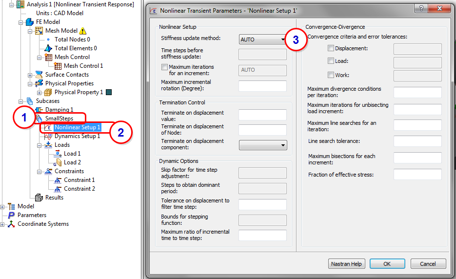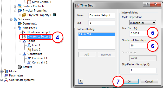 We create the second subcase by copying the first subcase and modifying the time step parameters.