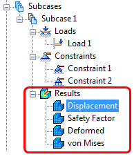 The primary use of the deformation plot is to show how the part or assembly changes shape in response to applied loading. To show deformation, in the Results branch of the tree, right-click .