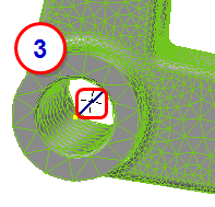Repeat the procedure to create the ball joint constraint on the small hole. For the Independent Vertex, select the reference point on the axis. For the Dependent Entities, select the inner diameter surface from each hole, as shown:
