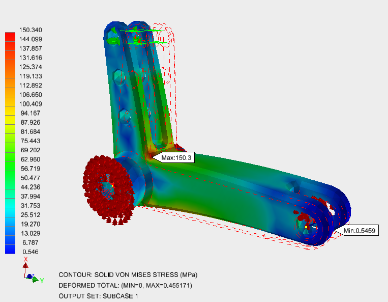 We replaced clearly incorrect loads and constraints with advanced techniques that produced a much more realistic deformation.