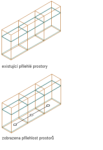 Ve většině případů jsou vztahy přilehlosti mezi plochami prostorů důležité pro export a zpracování rovin budovy pro technickou aplikaci. Pokud potřebujete zkontrolovat stav vztahů přilehlosti v aplikaci Sada nástrojů AutoCAD Architecture 2027, můžete nastavit vztahy přilehlosti ve výkresu jako viditelné.