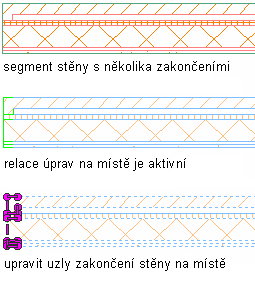 Zobrazení uzlů zakončení stěny při úpravách na místě