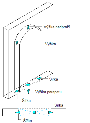 Umožňuje změnu výšky otvoru. Je možné zvolit, zda změnit výšku parapetu nebo výšku nadpraží. |