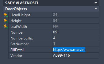 Použijte tento postup k zadání hodnot pro ruční vlastnosti jednoho nebo více objektů. Například pokud chcete zadat poznámku, která platí pro více dveří ve výkresu, můžete vybrat dveře a zadat poznámku jako data pro položku Poznámky.