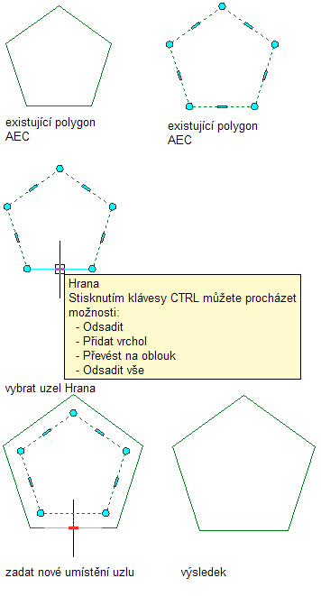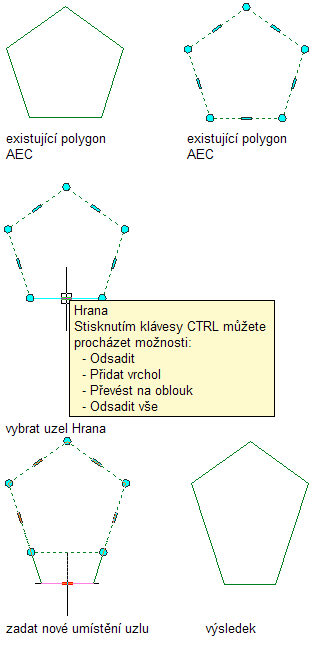 Odsazení hrany polygonu AEC pomocí uzlu hrany