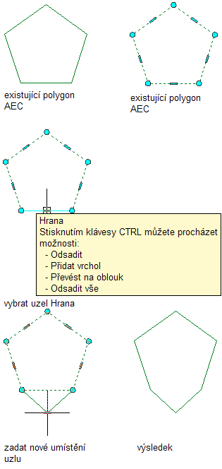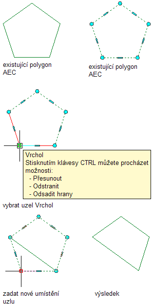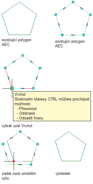 Přesunutí vrcholu polygonu AEC pomocí uzlu vrcholu