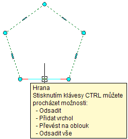 | přidat vrchol a vytvořit hranu | stiskněte klávesu CTRL pro přepnutí do režimu úprav Přidat vrchol. Přesuňte hranu na požadované místo a klikněte myší nebo zadejte hodnotu a stiskněte klávesu ENTER. |