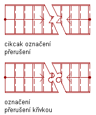 Reprezentace zobrazení půdorysu schodiště obsahuje volby pro označení přerušení