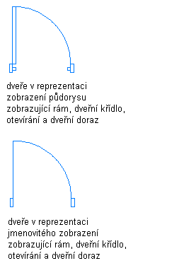 Dveře zobrazené v půdorysu a v položce Jmenovitá reprezentace zobrazení